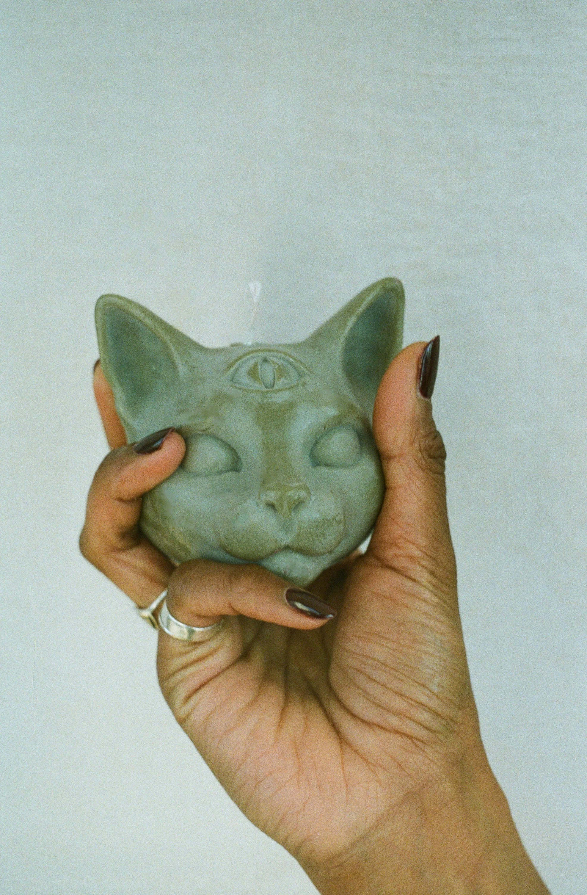 Image 1 of 5 Image 2 of 5 Image 3 of 5 Image 4 of 5 Image 5 of 5 Melvin £12.00 This three eyed queen is the perfect spooky piece for your home!Hand poured up North with love, with vegan soy wax. Color: Sage Pink Black Caramel White Quantity: Add To Cart Added! This three eyed queen is the perfect spooky piece for your home!Hand poured up North with love, with vegan soy wax.